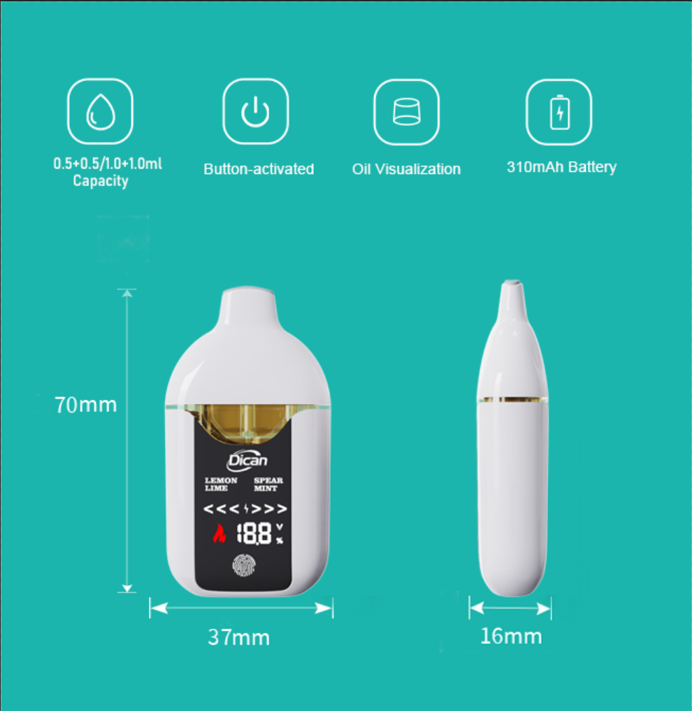 Dican Vape is proud to present our latest breakthrough: the Dual Tank Postless THC Oil Disposable Vape Device, designed for cannabis oil enthusiasts who value flexibility, purity, and style.